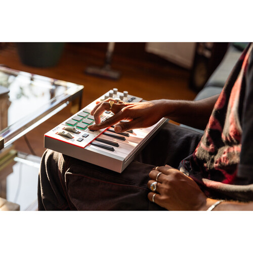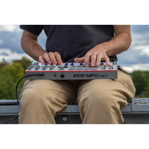 The Akai Professional MPK Mini MK4 White is a compact portable USB keyboard with pads, knobs, and joystick, ideal for music production on the go.