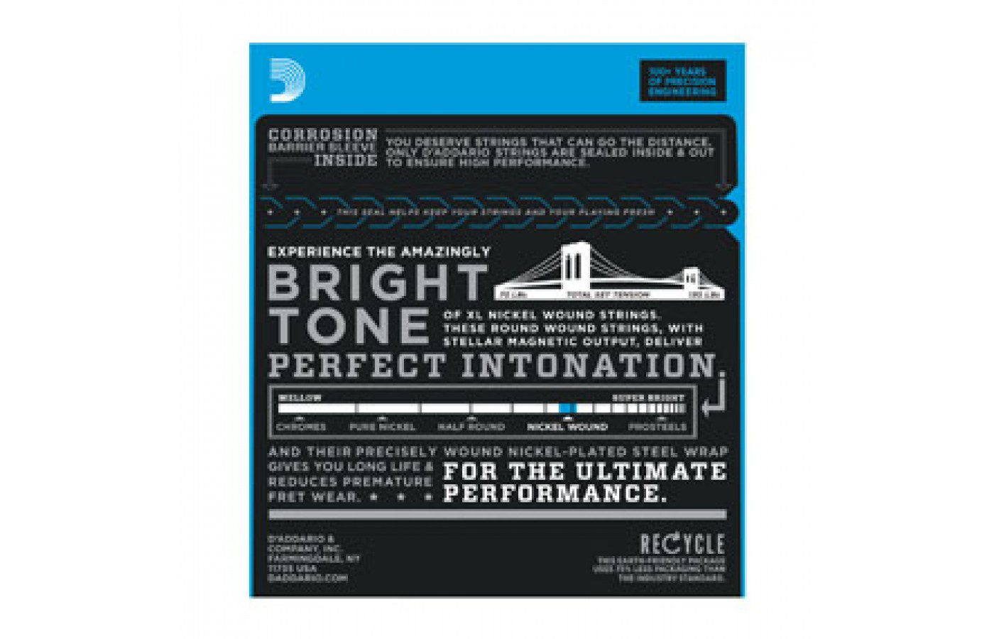 XL Nickel Wound, D’Addario’s most popular electric guitar strings, are precision wound with nickelplated steel onto a carefully drawn, hexagonally shaped, high carbon steel core. The result, strings with long lasting, distinctive bright tone and excellent intonation, is ideal for the widest variety of guitars and musical styles.