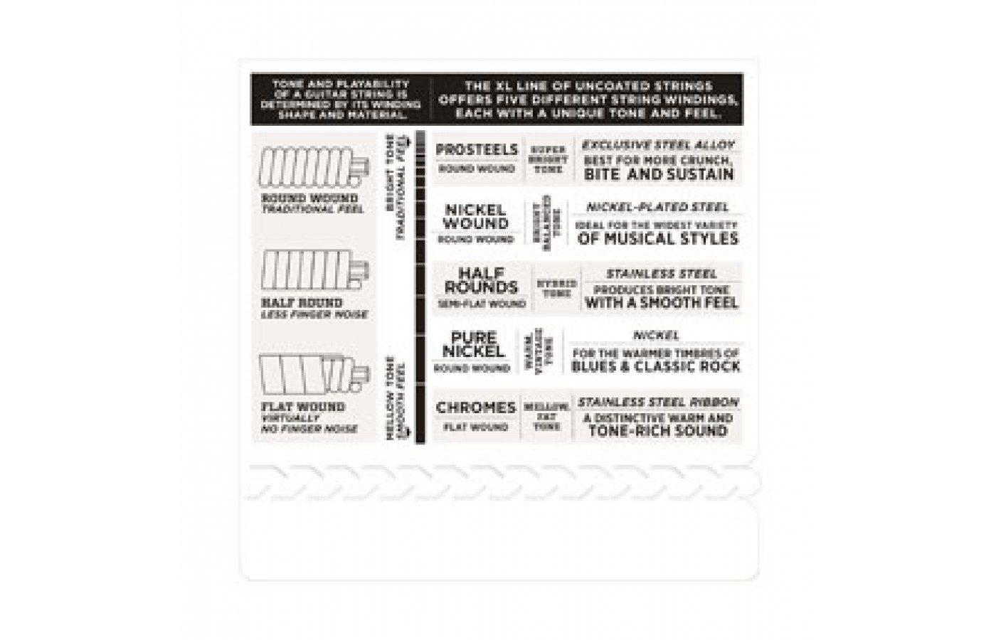 EXL110, D’Addario’s best selling set, offers the ideal combination of tone, flexibility and long life. The standard for most electric guitars.
