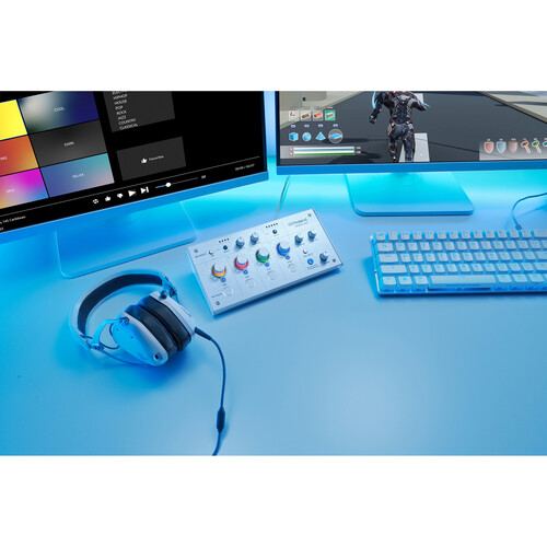 • 4-channel gaming audio mixer for microphones, auxiliary inputs, chat servers, and game leveling