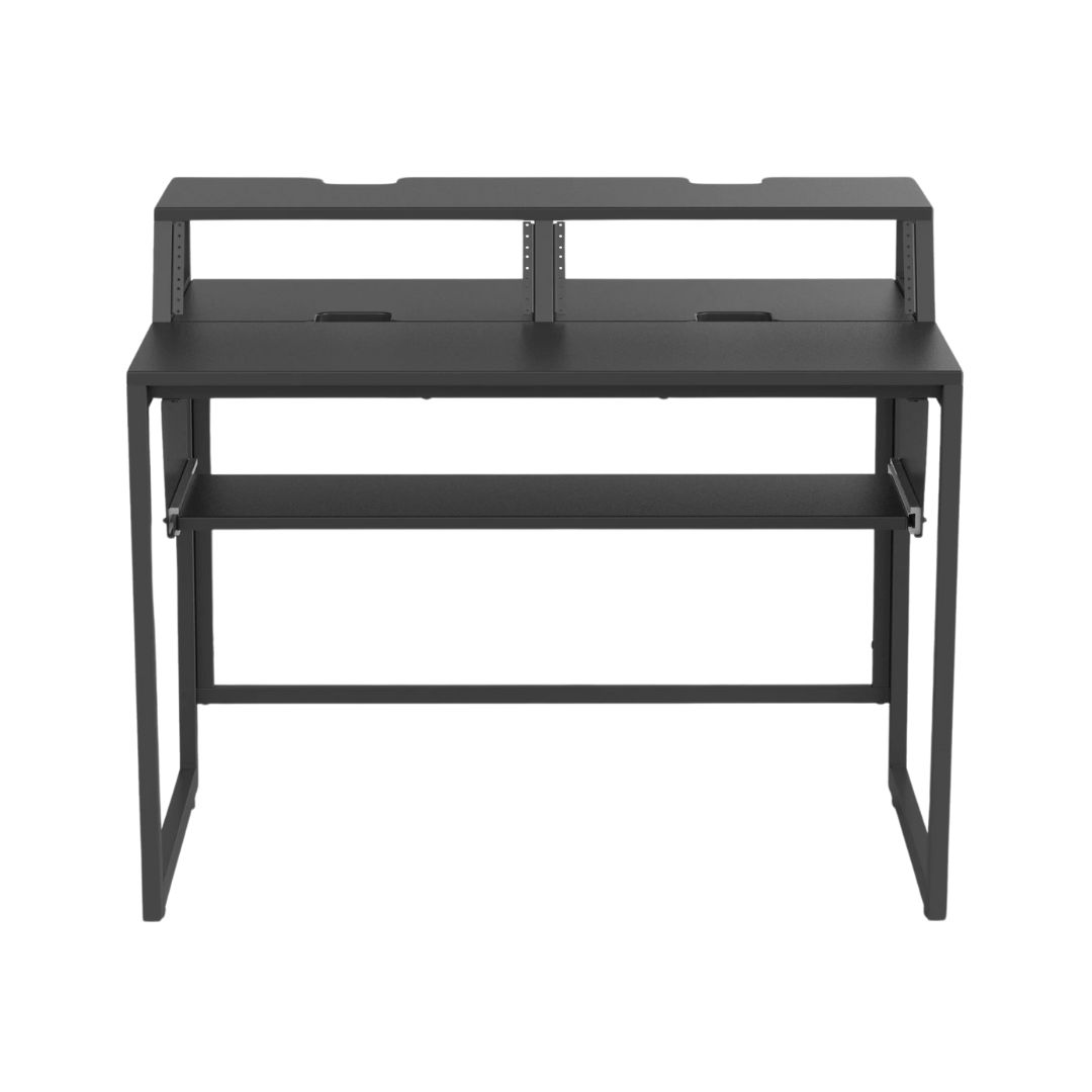 Introducing Star Rover, a compact studio desk ideal for music production in small spaces. Featuring a two-tier shelf design, it accommodates essential equipment like laptops, interfaces, speakers, and monitors. With a 6U rack space for recording gear, an adjustable keyboard tray, and high-quality steel and wood construction, Star Rover blends durability with functionality. Its thoughtful design includes a removable board for storage customization and cable organization features. Star Rover helps musicians optimize their studio setup for enhanced creativity and productivity.